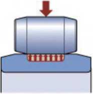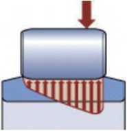 Le coin d'huile garantit que les rouleaux sont dans des conditions de roulement complètes dans la zone déchargée, ce qui évite l'augmentation de la température basée sur le frottement de glissement. La conception unique des nervures et le processus précis génèrent la formation d'un coin d'huile entre les extrémités des rouleaux et les nervures.